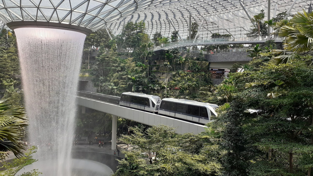 Una vez en la terminal 2, desde la que salía mi vuelo, me dirigí a un punto especial. Se trataba de Jewel, un edificio que alberga un centro comercial pero que tiene algo mejor dentro. Era el HSBC Rain Vortex, lo que se ve en la foto. Una cascada en el interior del edificio. Y el tren que comunicaba las terminales pasando al lado. Todo muy futurista. Yo solo pensaba en el momento en el que aparecería un dinosaurio.