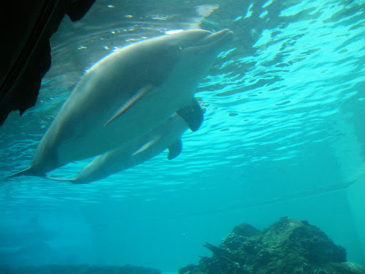 El llamado Dolphin Cove poco tiene que ver con los clásicos recintos para delfines de los zoos. La recreación del fondo marino es bastante buena y el tanque es de gran tamaño. Además tienen su piscina para los espectáculos diarios.