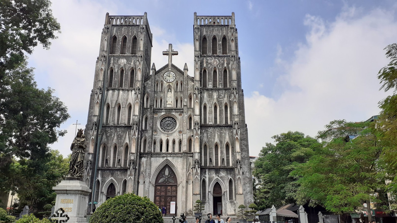 Una vez salí, rodeé el lago hacia el sur. Había mucha gente, era domingo y los habitantes salían a hacer su vida. Caminando hacia el oeste llegué a la Catedral de San José de Hanoi. Me resultó fascinante ver una catedral católica en un país asiático. Y entré, para ver cómo era. Estaban dando misa en francés. No salía de mi asombro.